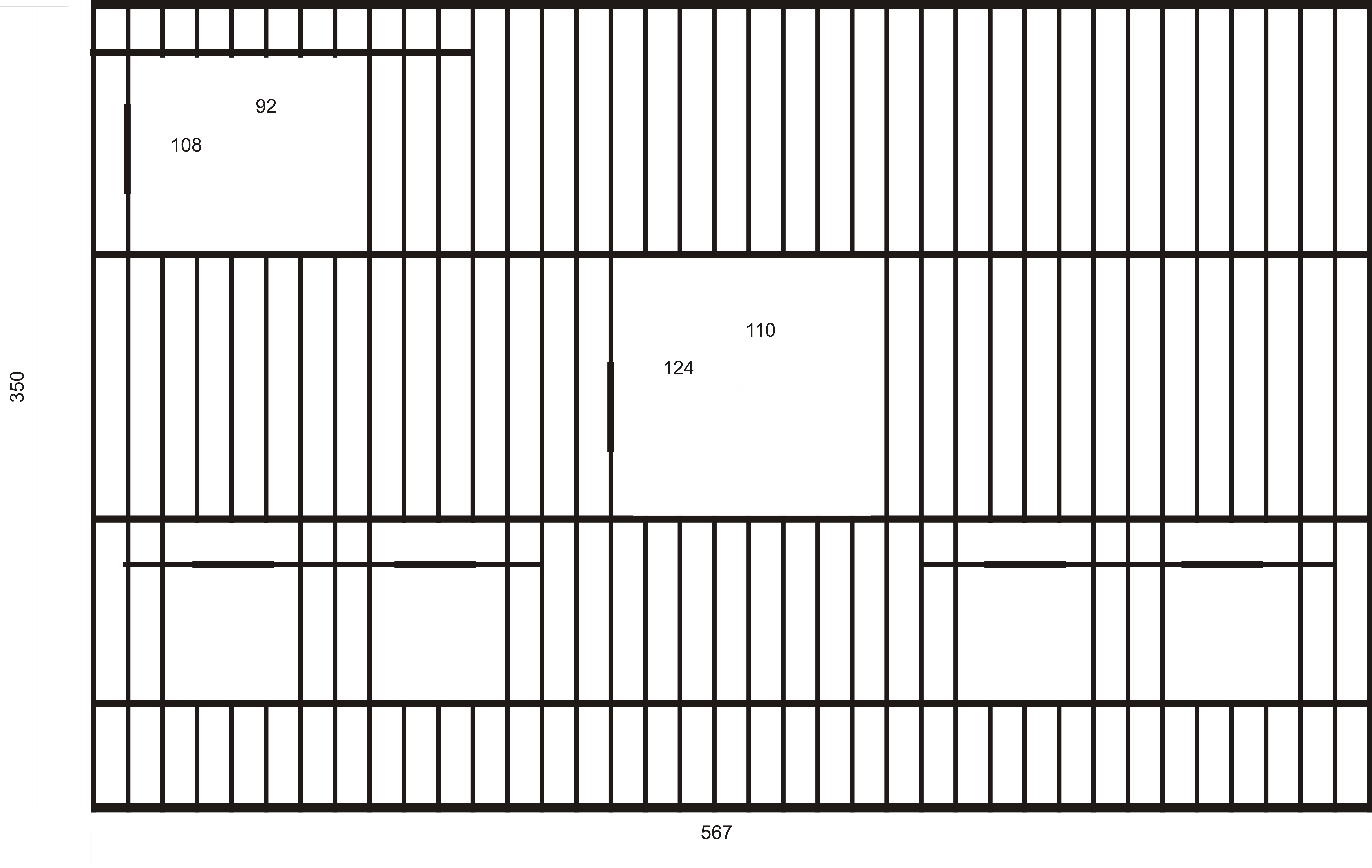 Yataydaki en üstve en alt tel 4mm ortadakiler 3mm dikeyler 2mm
